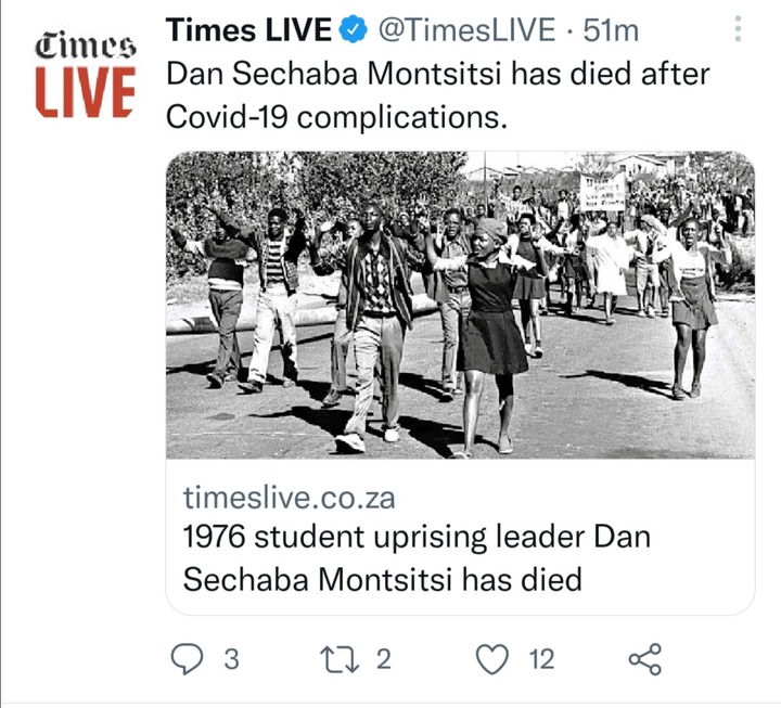 Dan Montsitsi / 1976 struggle hero Dan Sechaba Montsitsi has died ... - But our parents did not know about it, our teachers did not know about it, even the police did not.